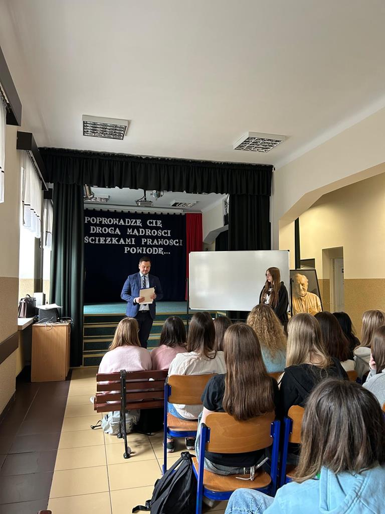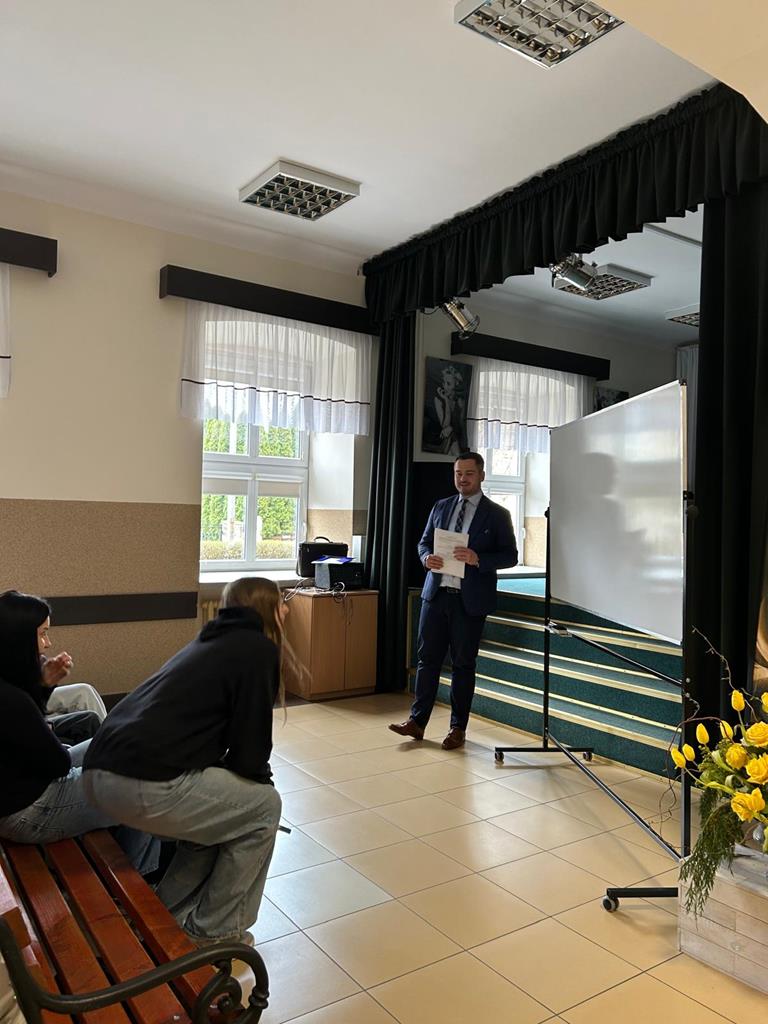 W dniu 14czerwca 2024 r. w ramach współpracy naszej szkoły z konecką biblioteką uczniowie klasy IIa uczestniczyli w spotkaniu z Panem Jarosławem Pązikiem, autorem książki „Do końca niezłomny. Mieczysław Włodarczyk ps. Dziadek, członek oddziału WiN sierż. Edwarda Szewczyka ps. Zawierucha”. Młodzież miała możliwość poznania losów bohatera, który nie chciał się zgodzić na sowiecki porządek w Polsce. W skupieniu słuchała o latach przeciwstawiania się nowej władzy i cierpieniach w więzieniach UB.W programie przewidziano też wspomnienia Grzegorza Włodarczyka o Ojcu i staraniach rodziny, aby ukazać prawdę o życiu koneckiego Żołnierza Niezłomnego.