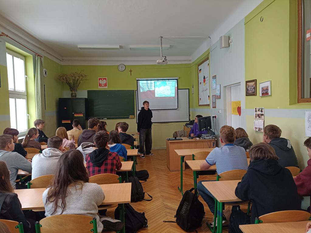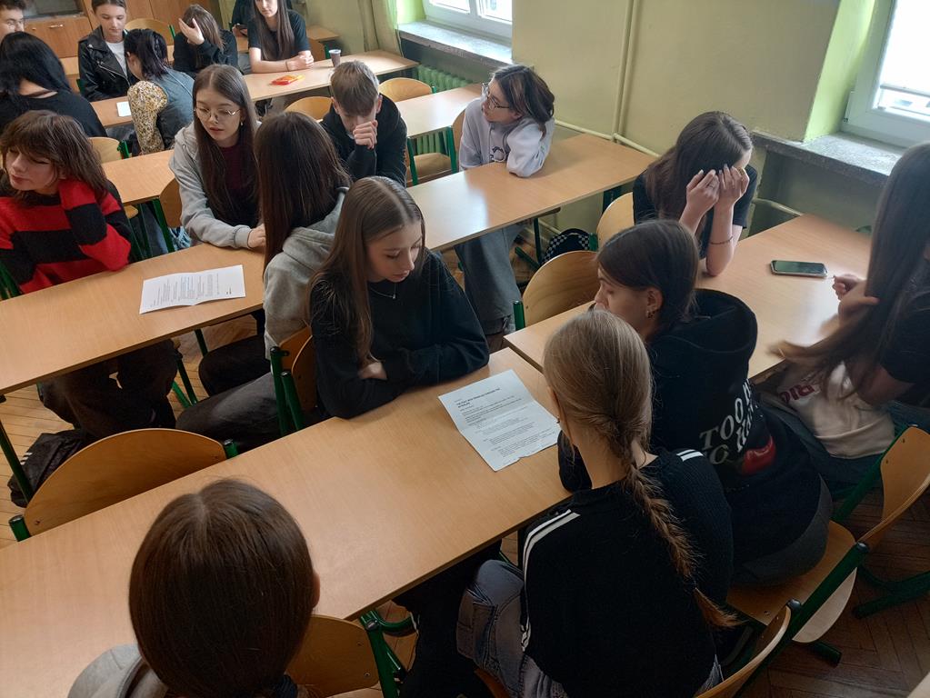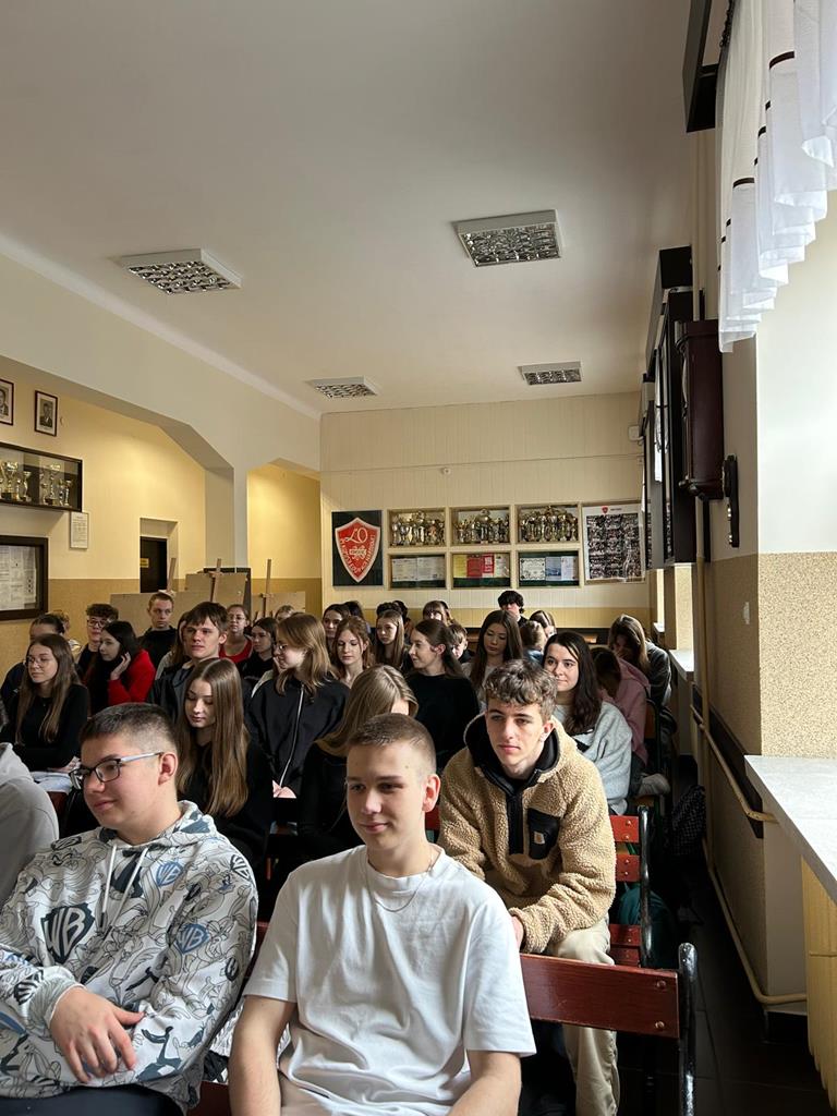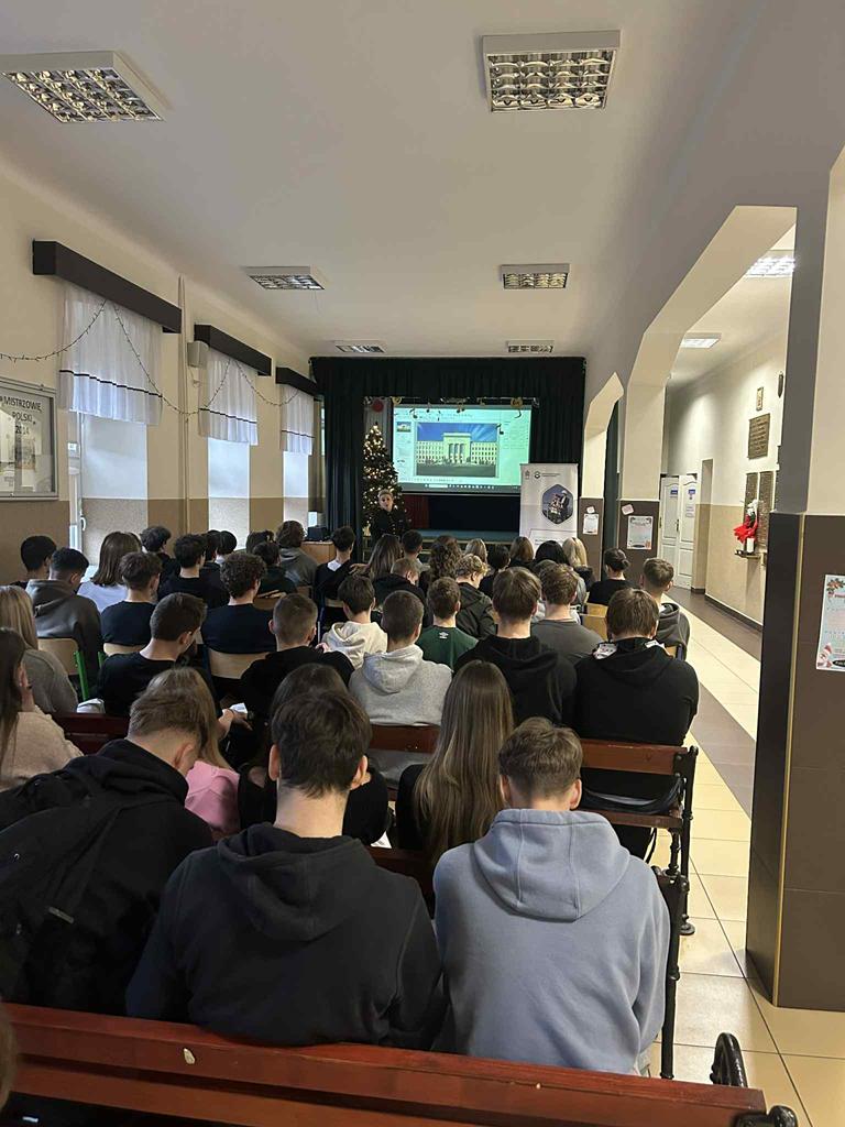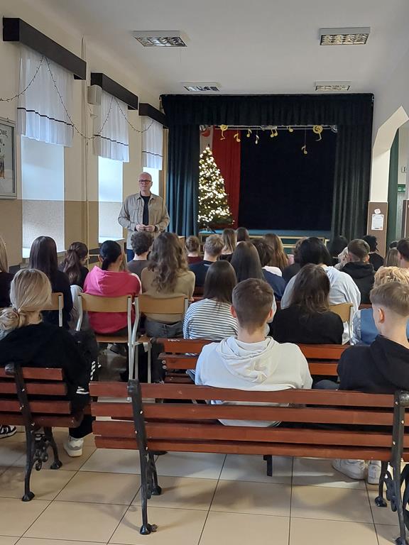 W dniu 9 grudnia 2025r uczniowie klas III wzięli udział w zajęciach z negocjatorem policyjnym Piotr Zdybał, zorganizowanych w ramach projektu ,,Przeciwdziałanie przemocy rówieśniczej-realizacja projektów rówieśniczych” realizowane przez Polskie Towarzystwo Suicydologiczne we współpracy z ZOZ Końskie, jako zadanie z zakresu zdrowia publicznego w ramach Narodowego Programu Zdrowia na lata 2021-2025.