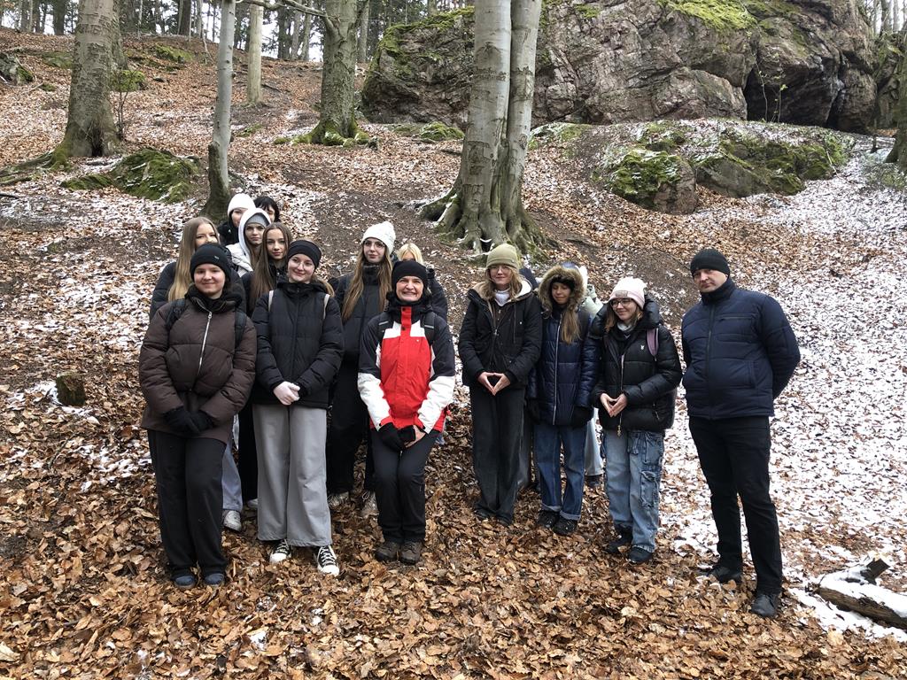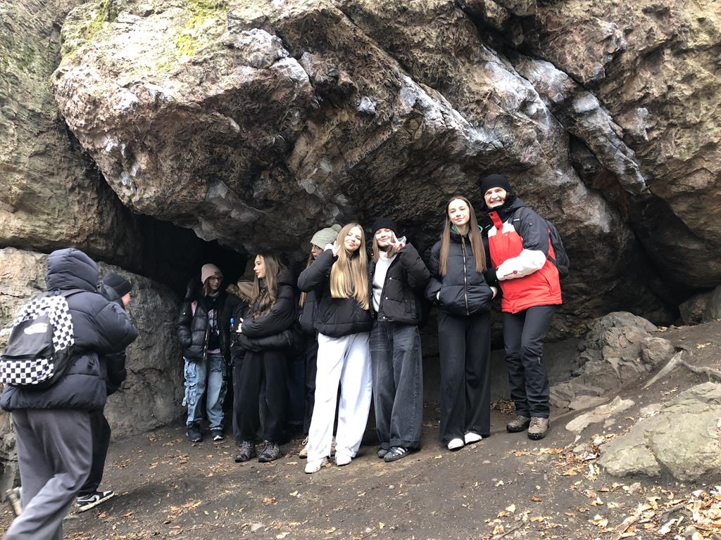 W czwartek, 30 października 2025 roku, uczniowie klasy 3A wybrali się na wyjątkową wycieczkę do Jaskini Raj niedaleko Kielc oraz do kina Helios. Był to dzień pełen wrażeń, nauki i dobrej zabawy. Pierwszym punktem programu było zwiedzanie Jaskini Raj, uznawanej za jedną z najpiękniejszych jaskiń w Polsce. Wnętrze tego niezwykłego miejsca zachwyciło uczniów bogactwem form skalnych – stalaktytów, stalagmitów i stalagnatów. Podczas spaceru podziemnymi korytarzami uczestnicy poznali fascynujące ciekawostki dotyczące powstawania jaskiń oraz ich historii. Przewodnik w ciekawy i przystępny sposób opowiadał o tajemnicach przyrody, dzięki czemu zwiedzanie stało się prawdziwą lekcją geologii w terenie.