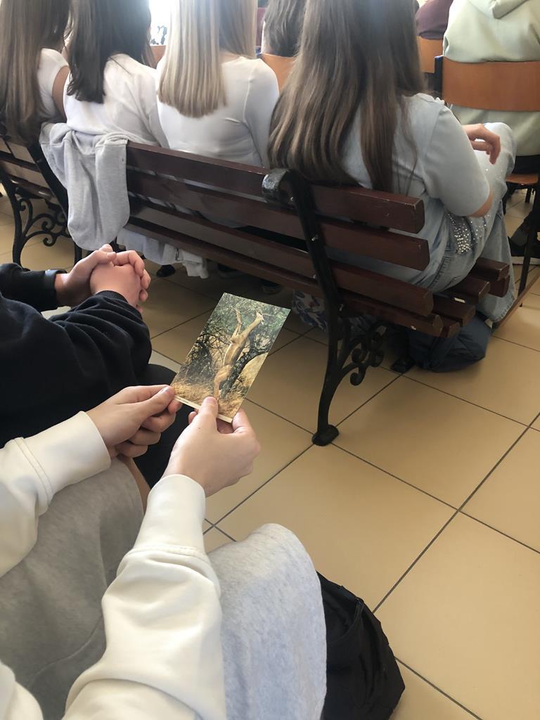Ksiądz Dariusz Zalewski, rektor wspólnoty pallotyńskiej, serdecznie nas powitał, następnie przybliżył historię kultu i świątyni Matki Bożej Wychowawczyni. Następnie poprowadził modlitwę, którą młodzież i opiekunowie objęli dyrekcję szkoły, nauczycieli, kapłanów, wszystkich uczniów naszej szkoły i ich rodziców.