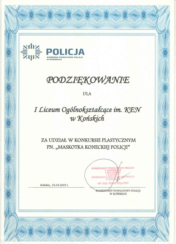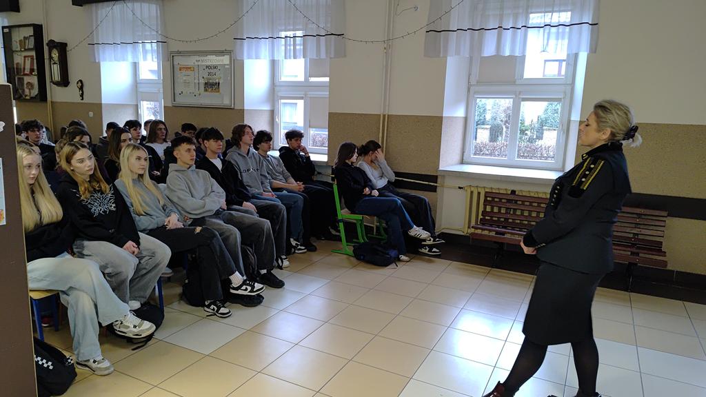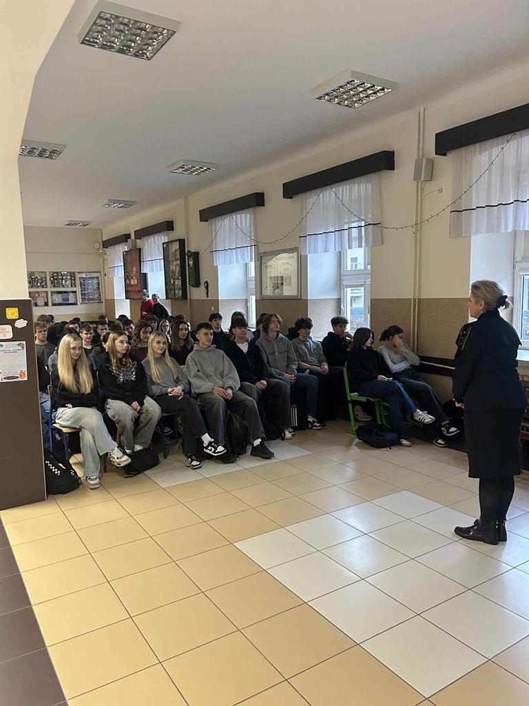 W dniu 24.11.2025r. w I Liceum Ogólnokształcącym im. KEN w Końskich odbyły się zajęcia profilaktyczne dla klas pierwszych nt. odpowiedzialności prawnej nieletnich,