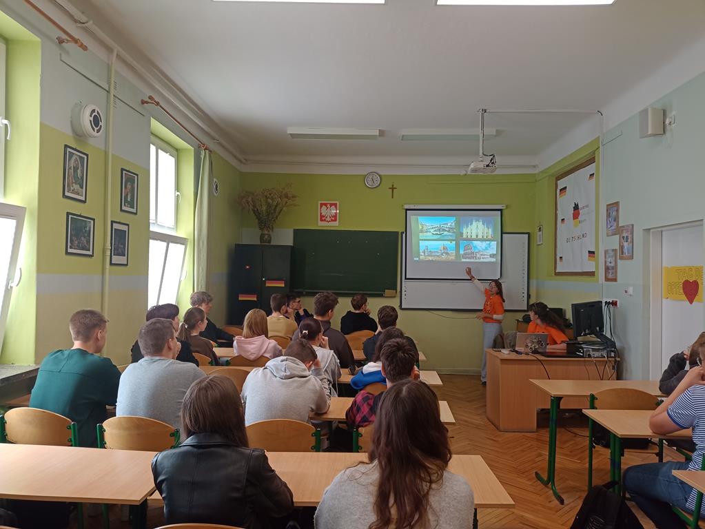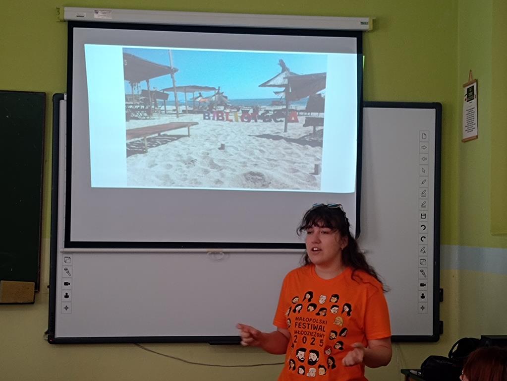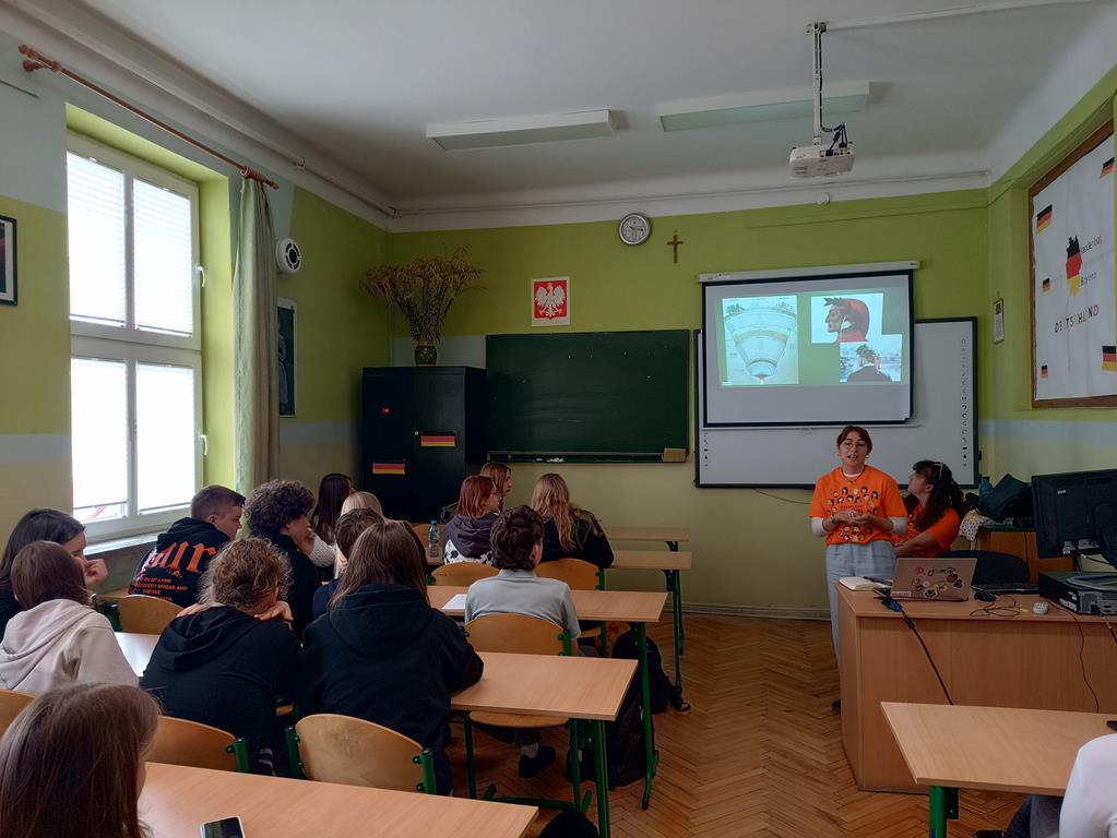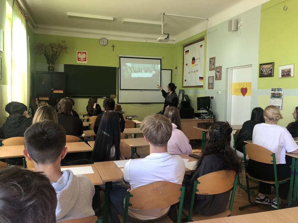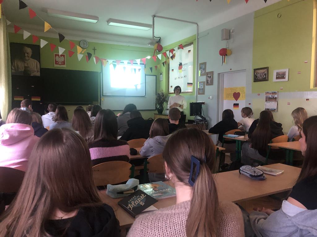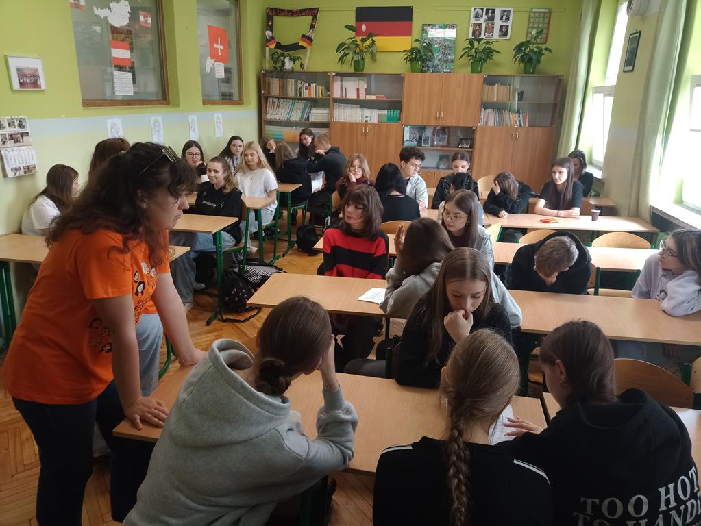 W dniach 2 i 3 października 2024 roku w naszej szkole odbyły się warsztaty z okazji Europejskiego Dnia Języków Obcych, które prowadziła pani Ania Kania z biblioteki publicznej w Końskich. Grupy języka angielskiego miały okazję uczestniczyć w tych zajęciach. Warsztaty były prowadzone w języku angielskim, co stanowiło doskonałą okazję do rozwijania umiejętności językowych uczniów. Podczas spotkań omawiano znaczenie nauki języków obcych oraz wielojęzyczność w Europie. Uczniowie brali aktywny udział w warsztatach, chętnie angażując się w ćwiczenia i dyskusje.