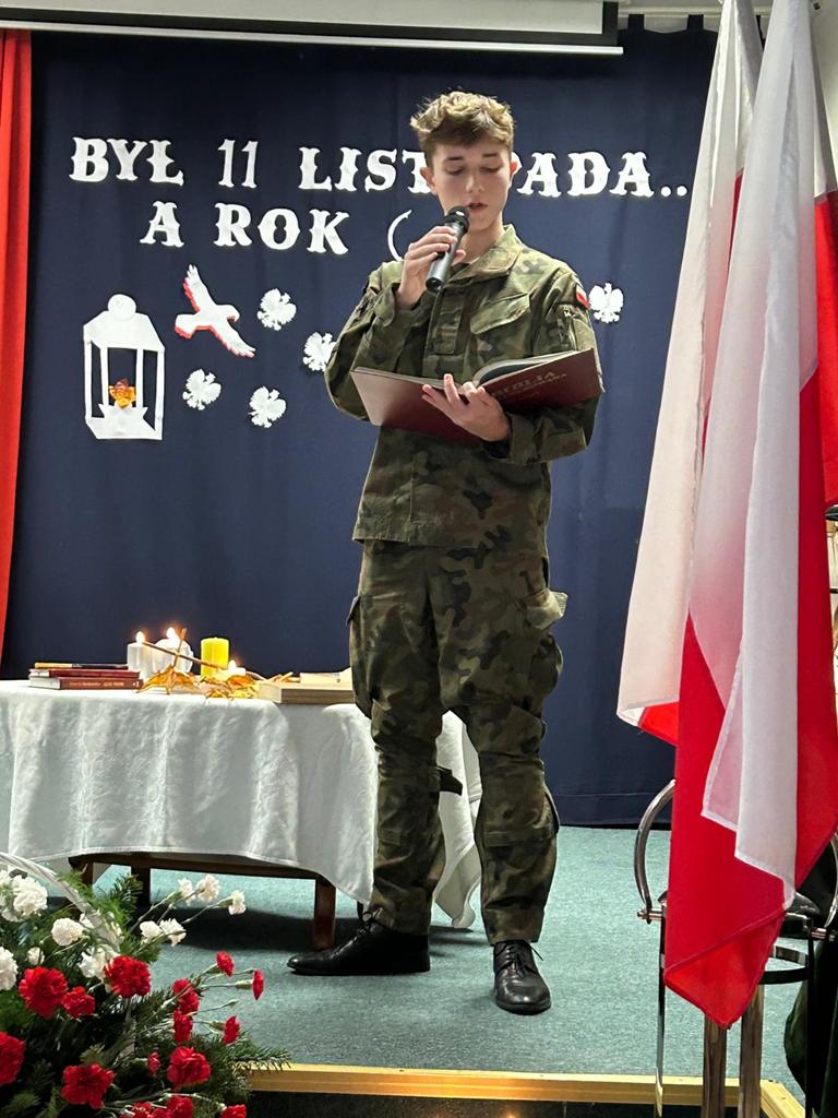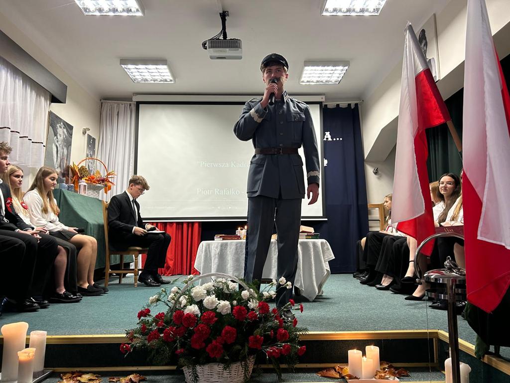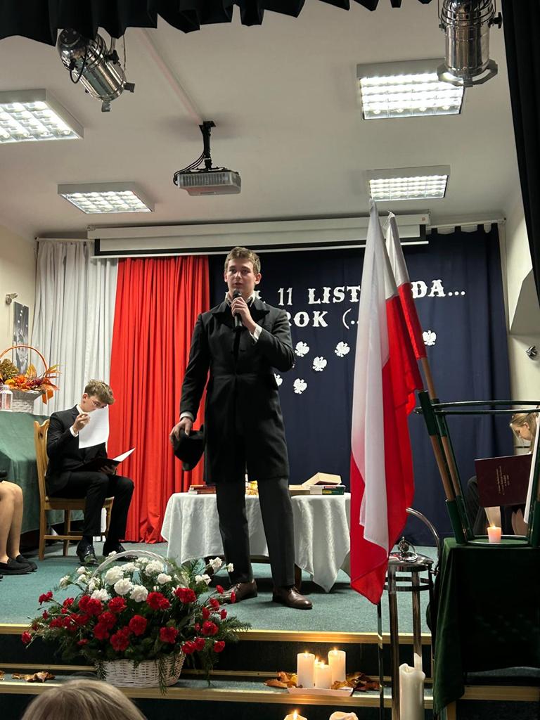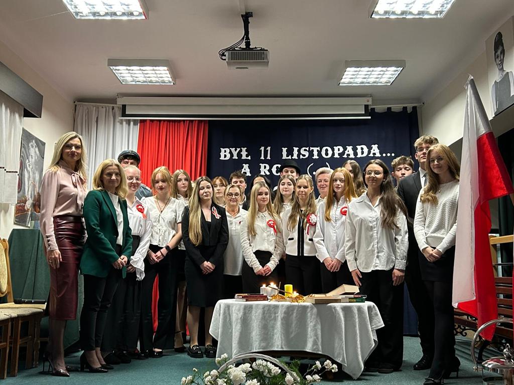 Słowami z „Kwiatów polskich” Juliana Tuwima rozpoczęła się akademia w 107 rocznicę odzyskania niepodległości przez Polskę. W naszej szkole był to dzień wyjątkowo uroczysty. Wspólnie odśpiewany hymn wprowadził słuchaczy w atmosferę powagi i zadumy. Uczniowie strofami wierszy, które polscy poeci pisali w okopach i w czasie niewoli, przypomnieli bolesną historię walk o wolną Ojczyznę. Dopełnieniem słownej opowieści, o długiej drodze do Niepodległej ,stały się pieśni i piosenki ,które wywoływały wzruszeni i skłaniały do zadumy nad losem wielu pokoleń Polaków przelewających krew w walkach na wszystkich frontach walczącej Europy. Pięknym akcentem akademii było oddanie hołdu poległym w walce za kraj absolwentom naszej szkoły, których nazwiska upamiętnia tablica w Auli Małachowskich. Uroczystość poświęcona 107 rocznicy odzyskania przez Polskę niepodległości zakończyło wspólne odśpiewanie Roty.