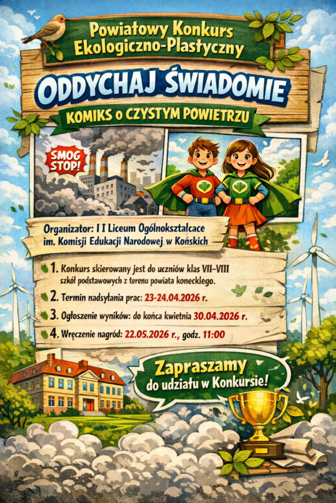 Powiatowy Konkurs Ekologiczno-Plastyczny „Oddychaj Świadomie – Komiks o Czystym Powietrzu”