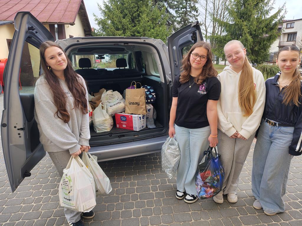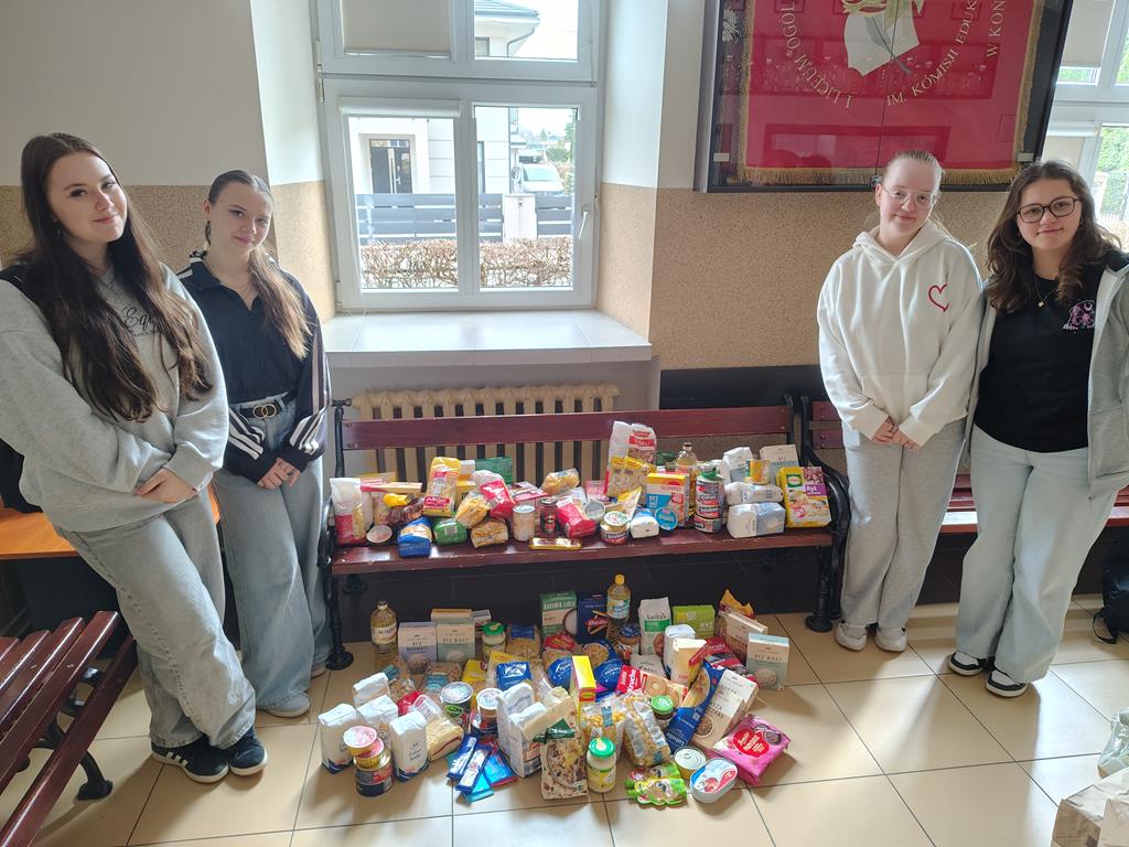 W dniu 08.04.2026 roku uczniowie po raz kolejny wzięli udział w akcji charytatywnej. Tym razem było to wsparcie zbiórki żywności z okazji Świąt Wielkanocnych, organizowanej przez MGOPS w Końskich, której celem była pomoc potrzebującym poprzez zaopatrzenie Koneckiej Jadłodzielni. Zgromadziliśmy wiele produktów spożywczych o długim terminie, przydatności do spożycia takich jak makaron, ryż, olej, mąka, cukier, konserwy i wiele innych. Z góry dziękujemy za okazane wsparcie i zaangażowanie w pomoc potrzebującym.