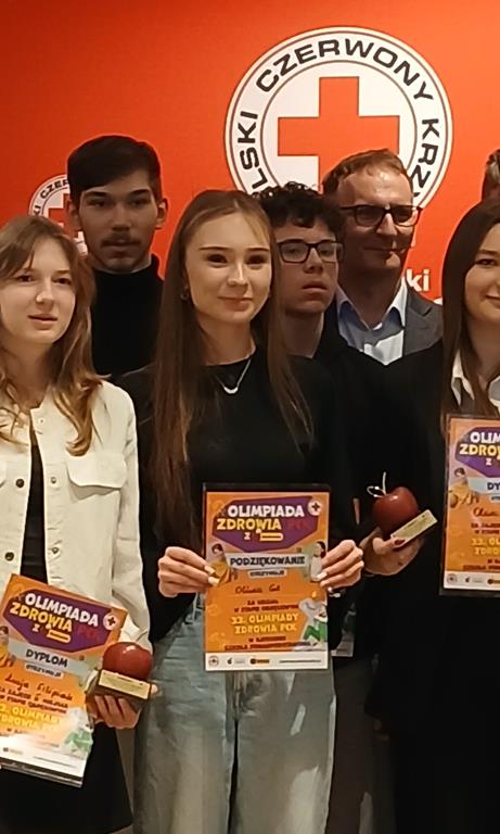 W dniu 10 kwietnia w Kielcach odbył się etap okręgowy XXXIII edycji Olimpiady Zdrowia PCK. Uczestnikami byli uczniowie szkół podstawowych i ponadpodstawowych (w osobnych kategoriach), którzy zwyciężyli w etapach rejonowych Olimpiady. Nasza uczennica Oliwia Gil z klasy 3C reprezentowała powiat konecki. Podczas zawodów okręgowych uczestnicy rozwiązywali test, w których trzeba było wykazać się wiedzą na temat szeroko rozumianego zdrowego stylu życia, ale przy ustalaniu punktacji uwzględniona została także ocena z przeprowadzonej wcześniej akcji prozdrowotnej. Każdy uczestnik musiał zaplanować i przeprowadzić wcześniej akcję prozdrowotną związaną z tematem tegorocznej edycji Olimpiady: „Zdrowie to nie tylko ciało, ale i umysł, czyli zdrowie psychiczne dzieci i młodzieży”. Oliwia przeprowadziła w naszej szkole akcję na temat zdrowia mózgu. Uczennica otrzymała za udział dyplom oraz upominki. Gratulujemy!