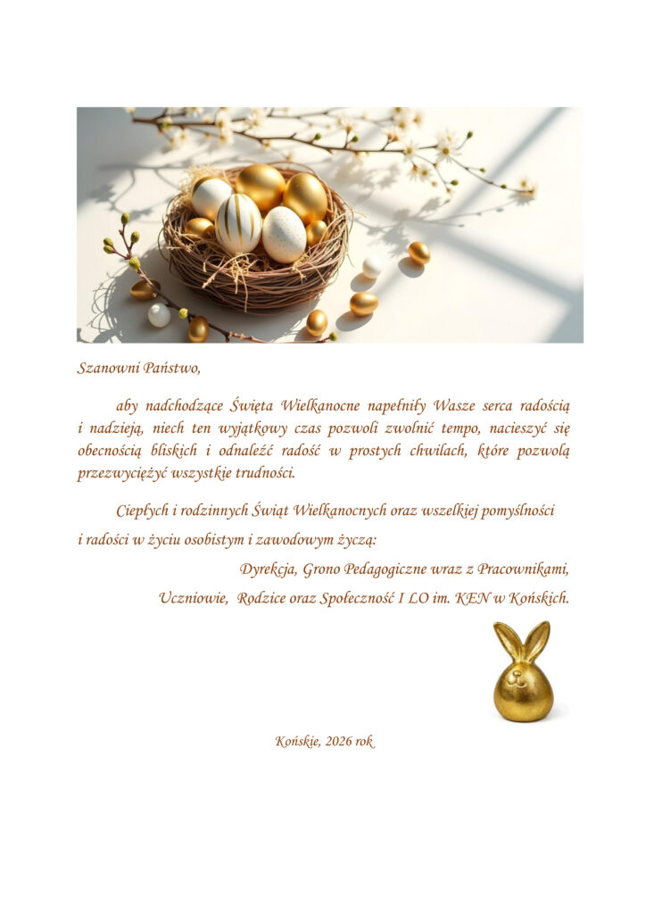 W imieniu Dyrekcji I Liceum Ogólnokształcącego im. Komisji Edukacji Narodowej w Końskich serdecznie zapraszamy uczniów szkół podstawowych z powiatu koneckiego do wzięcia udziału w IX edycji Powiatowego Konkursu Literackiego pod hasłem „Zawsze się wydaje, że w innym miejscu będzie lepiej”