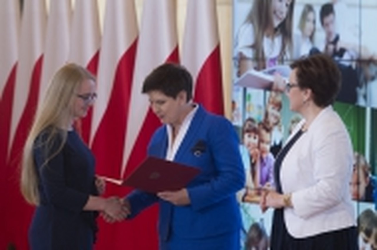 Kinga znalazła się w gronie uczniów z całej Polski, którzy odebrali dyplom stypendialny z rąk Pani Premier Beaty Szydło. Mieli oni również możliwość zwiedzenia gmachu KPRM, między innymi sali im. Andrzeja Frycza-Modrzewskiego, w której odbywają się posiedzenia rządu.